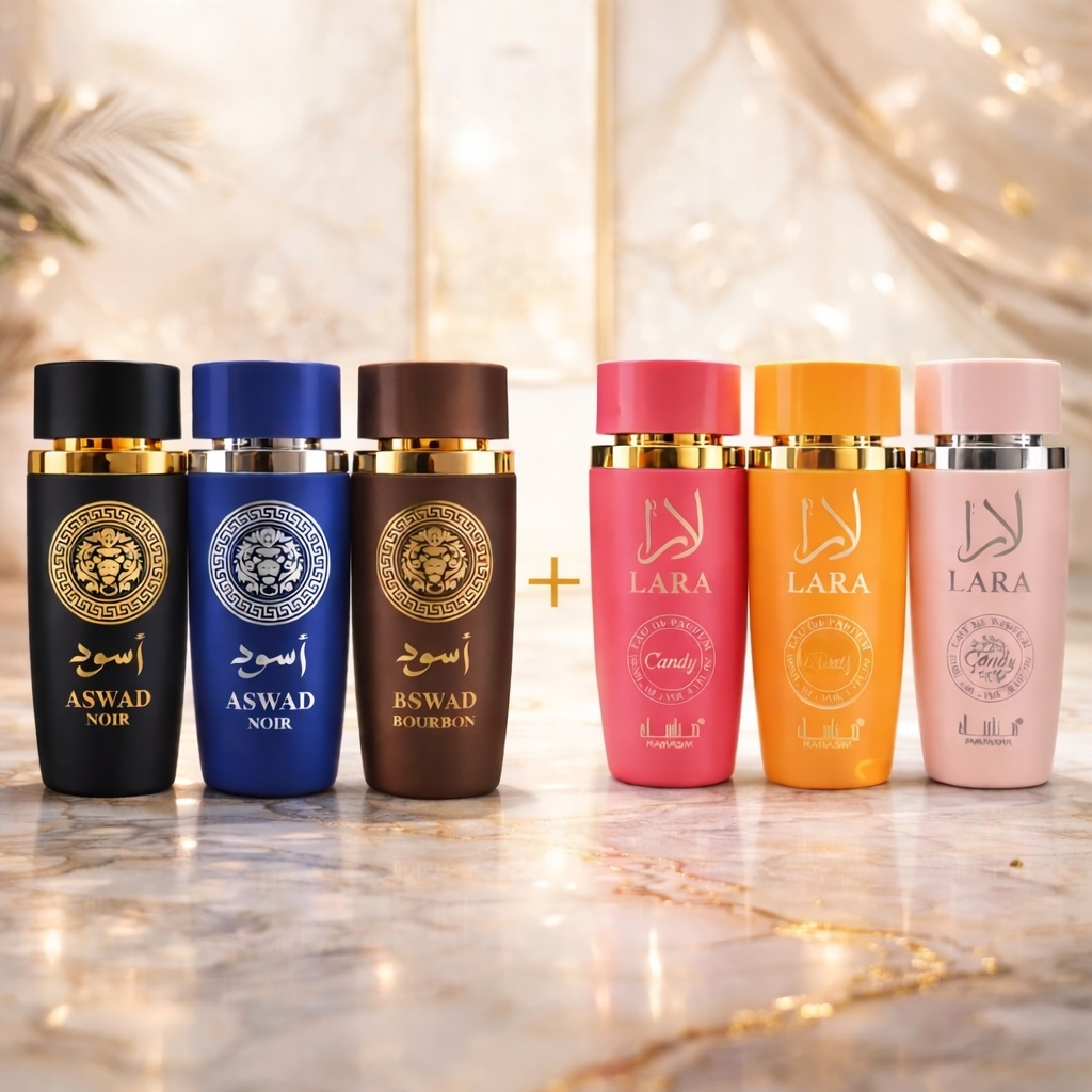 Am combinat feminitatea delicată LARA cu forța masculină ASWAD într-un set complet de 6 parfumuri, creat special pentru cupluri sau pentru cei care vor diversitate totală într-o singură achiziție. Un mix echilibrat de arome dulci, florale, fresh și orientale, potrivit pentru orice moment și orice stare de spirit.